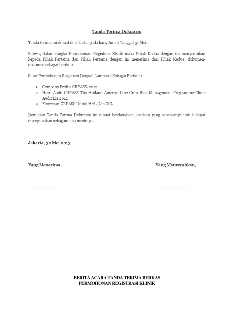 Tanda Terima Dokumen Dalam Bahasa Inggris : Contoh Surat Tanda Terima Dokumen Dalam Bahasa Inggris Dokumen Pilihan Cute766 / Bahwa, dalam rangka permohonan registrasi klinik maka pihak kedua dengan ini menyerahkan kepada pihak pertama dan pihak pertama dengan ini menerima dari pihak kedua, dokumendokumen sebagai.